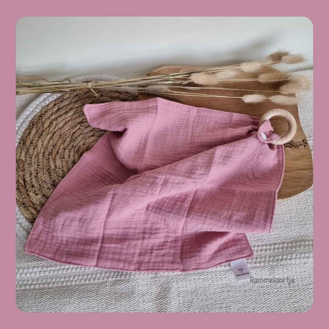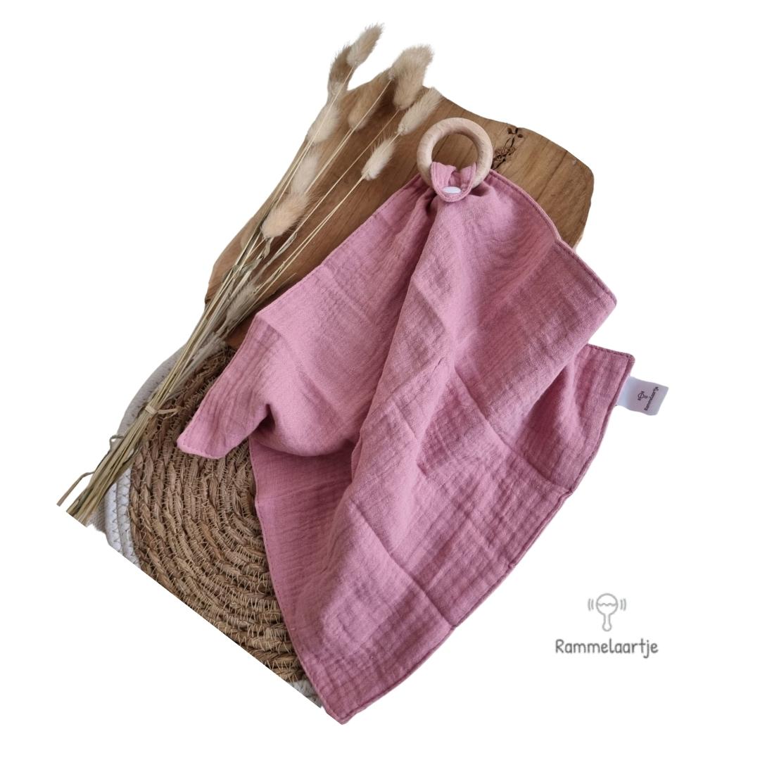 Hydrofiele Knuffeldoek Roze met Bijtring